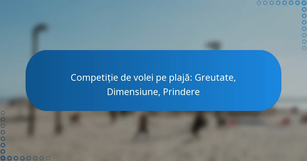 În voleiul de plajă competițional, greutatea standard a mingilor variază între 260 și 280 de grame, ceea ce este esențial pentru o performanță optimă. Aceste mingi de volei trebuie să respecte, de asemenea, reglementări specifice de dimensiune, având de obicei un diametru de 65 până la 67 de centimetri. În plus, aderența unei mingi de volei de plajă joacă un rol crucial în desfășurarea jocului, îmbunătățind controlul și manipularea mingii, în special în condiții de nisip.