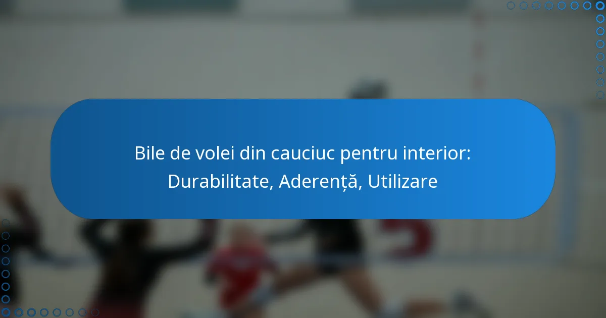 Voleibolurile din cauciuc pentru interior sunt concepute pentru durabilitate și performanță, făcându-le ideale pentru diverse suprafețe de joc. Compoziția materialului și aderența lor influențează semnificativ controlul jucătorului, permițând mișcări precise în timpul jocului. Prin înțelegerea factorilor care influențează longevitatea și întreținerea acestora, jucătorii își pot îmbunătăți experiența generală pe teren.